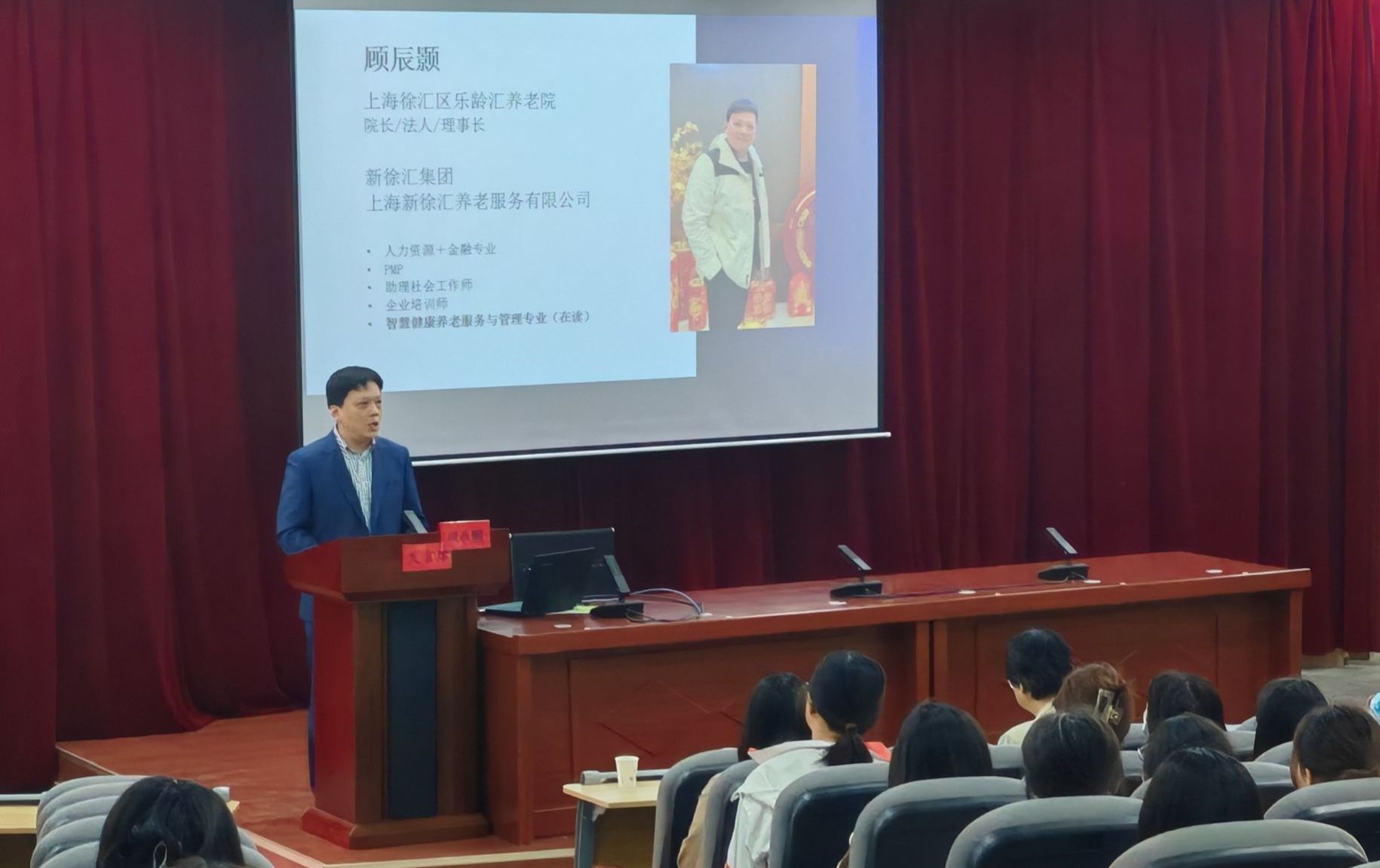 4月28日,太阳集团tyc151邀请上海新徐汇公司旗下徐汇区乐龄汇养老院经理顾辰颢,在学术报告一厅举行“养老服务相关专业发展与职业规划”报告会,会议由太阳集团tyc151经理田莉梅教授主持,公司师生300余人参加。
