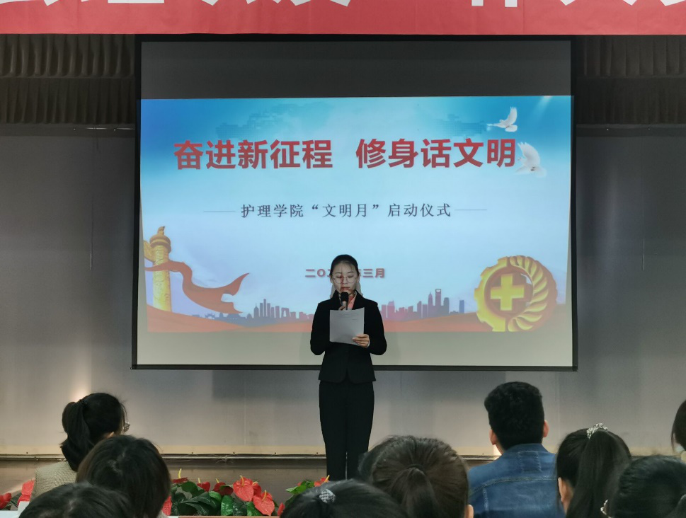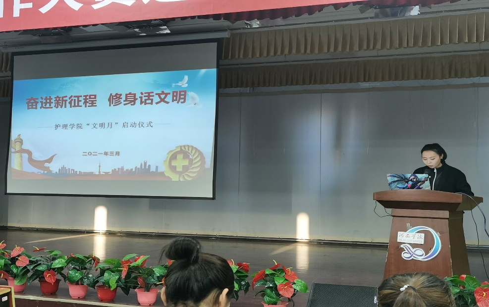 启动仪式上,太阳集团tyc151团委副书记张欣鹏宣读了《太阳集团tyc151“文明月”活动方案》。本次文明月活动中,太阳集团tyc151将以“奋进新征程 修身话文明”为主题,以“双优三文明”主题教育为主线,开展“我们的班风是什么”主题班会、“学习百年党史、争做时代青年”主题团课、倡议创建“文明课堂”、“创优美环境、建文明宿舍”文明宿舍创建、文明志愿服务活动、“无烟校园”创建、“清朗网络”创建等多项活动,引导全院同学自觉“争优良学风、创优美环境,争创文明班级、争建文明宿舍、争做文明老员工”。