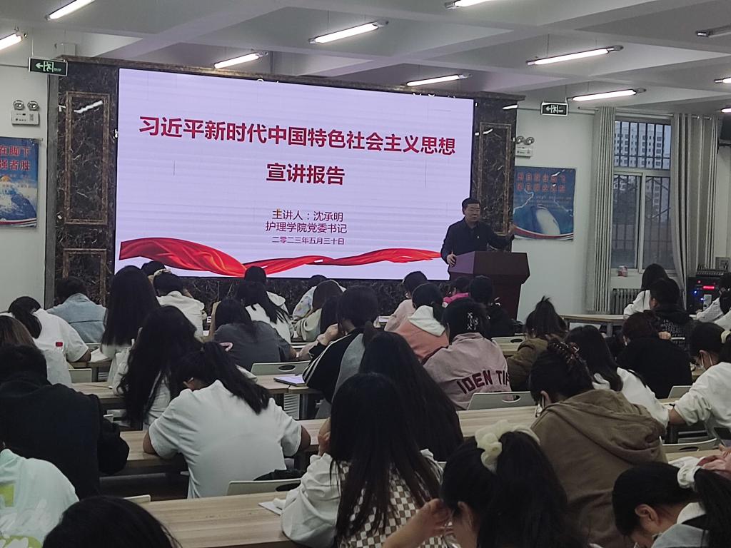 5月30日晚,在全院上下深入开展学习贯彻习近平新时代中国特色社会主义思想主题教育之际,护理公司党委书记沈承明以《习近平新时代中国特色社会主义思想》为题,为入党积极分子培训班和员工党员主题教育读书班学员讲授了专题党课。160多名员工党员、入党积极分子和辅导员聆听了报告。