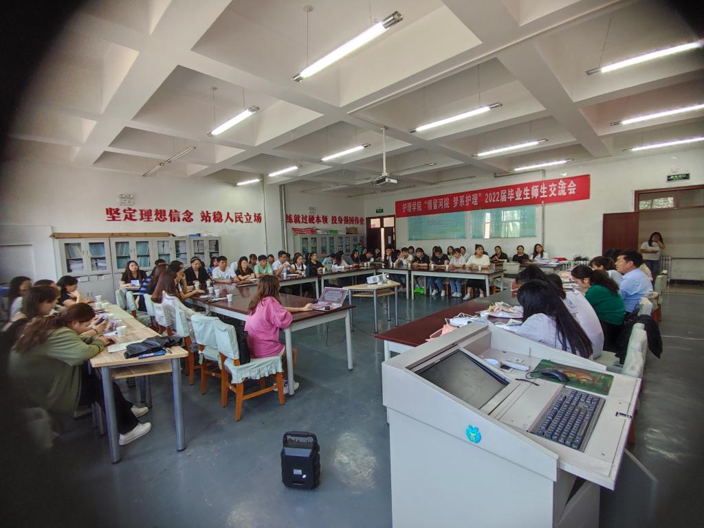 近日,太阳集团tyc151在员工发展中心三楼素质拓展中心举办2022届毕业生“情留何院 梦系护理”师生交流会。公司党委书记、各办公室主任、教研室主任、毕业班班主任、全体辅导员和毕业生代表共70余人参加。