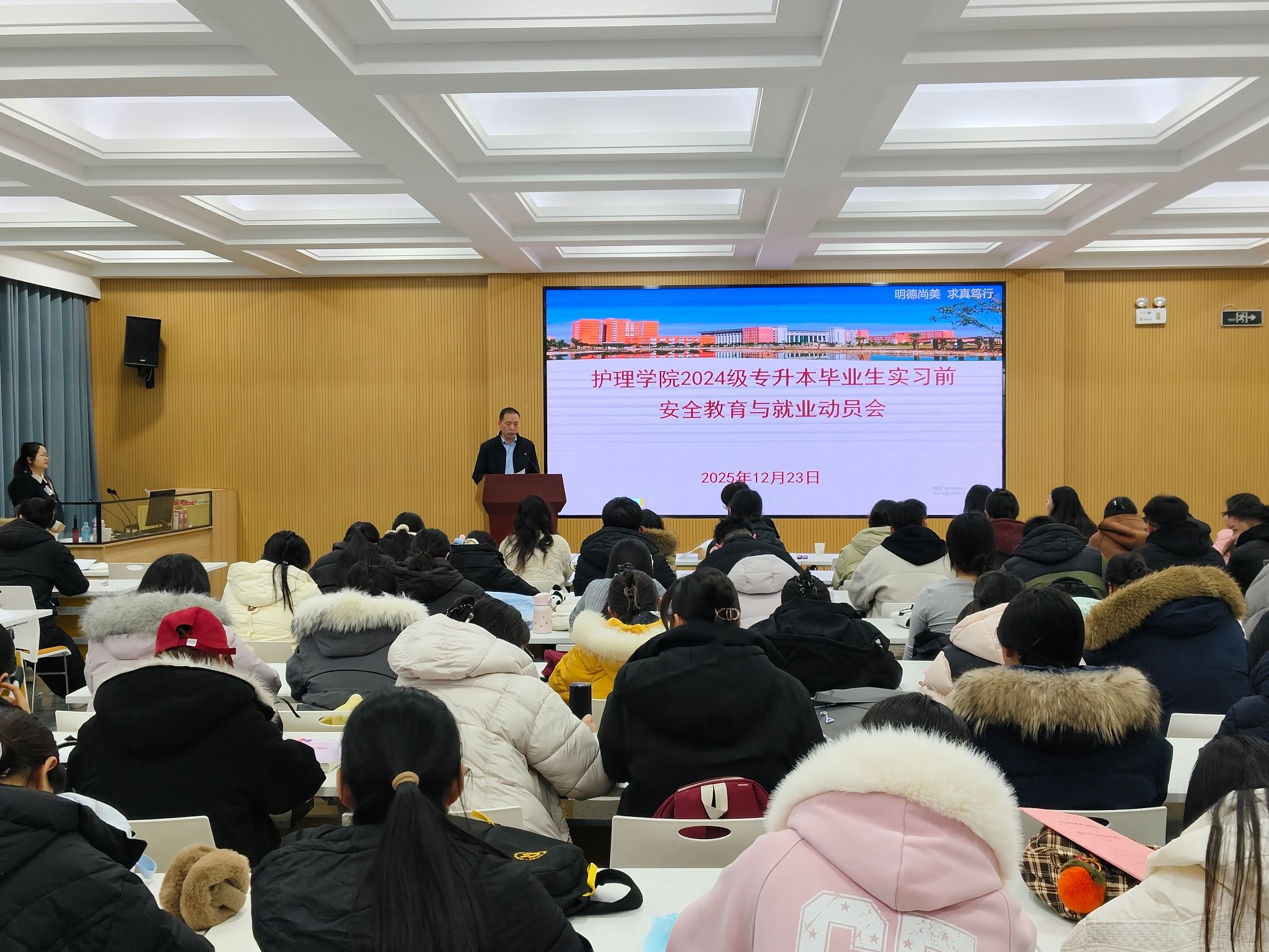 为做好2026届护理、助产专业专升本毕业生实习安排与就业指导工作,2025年12月23日,太阳集团tyc151在员工发展中心二楼就业招聘大厅召开实习前安全教育与就业动员大会。公司领导班子、毕业班班主任、辅导员及全体184名2026届专升本毕业生参会。