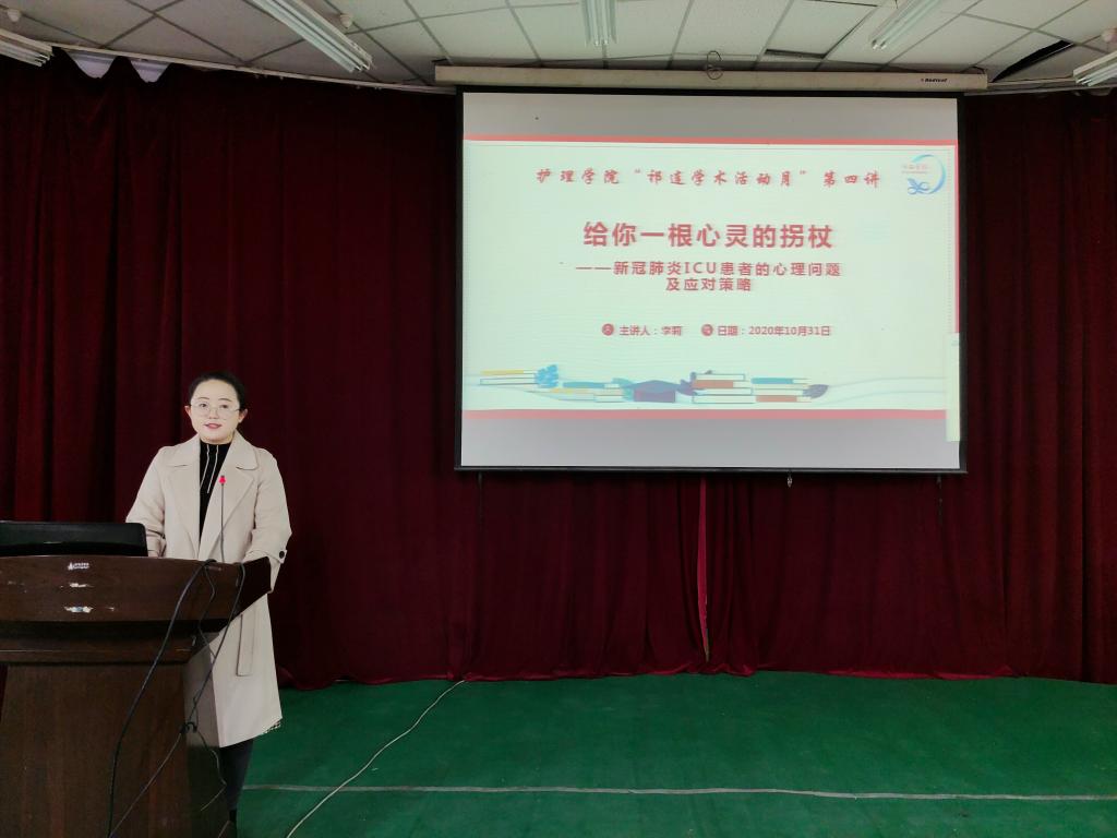 李莉护师2016年毕业于太阳集团tyc151,是一名驰援武汉抗击新冠肺炎疫情的优秀护理人员,她结合在新冠肺炎ICU病房的工作经历及大量文献资料,详细介绍了ICU病房里新冠肺炎重症患者及医护人员存在的心理问题,分析了医护人员如何通过心理疏导和精湛的技术取得患者的支持与配合。通过李莉的讲述,让全体师生认识到心理护理在ICU病房的重要性,在今后开展新冠肺炎相关心理研究时不仅要关注患者,还应该关注医护人员的心理变化。